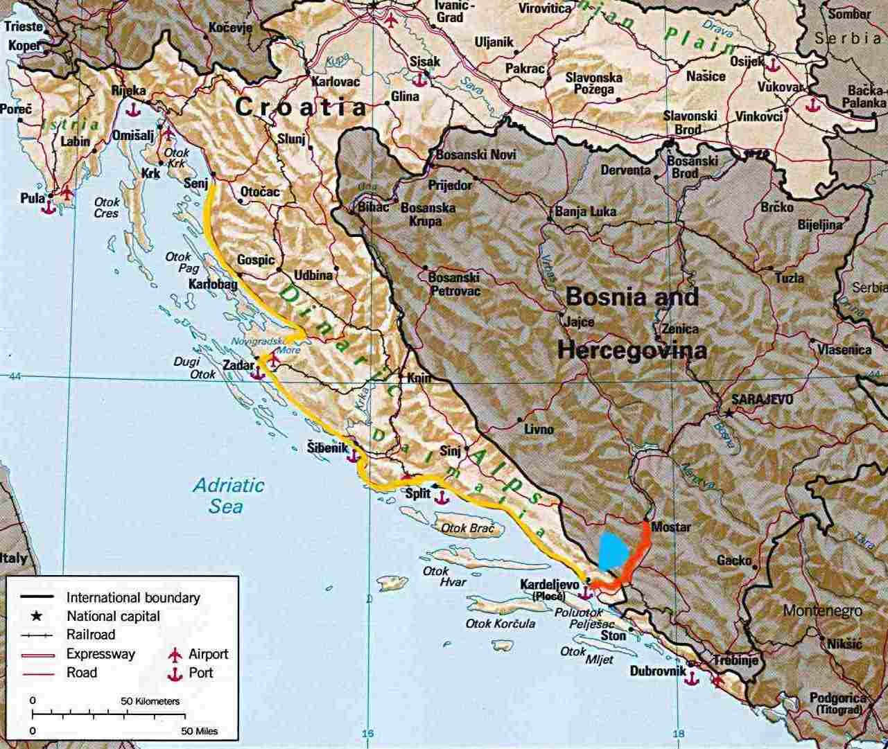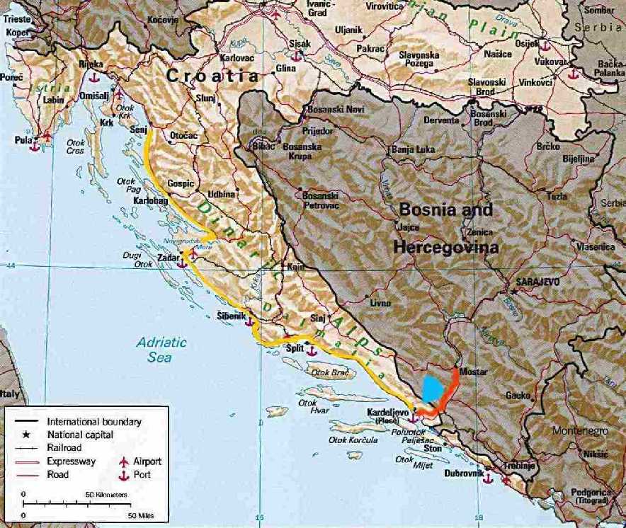 (red and blue area) is located outside the boundary of influence of Dalmatia (Venice),